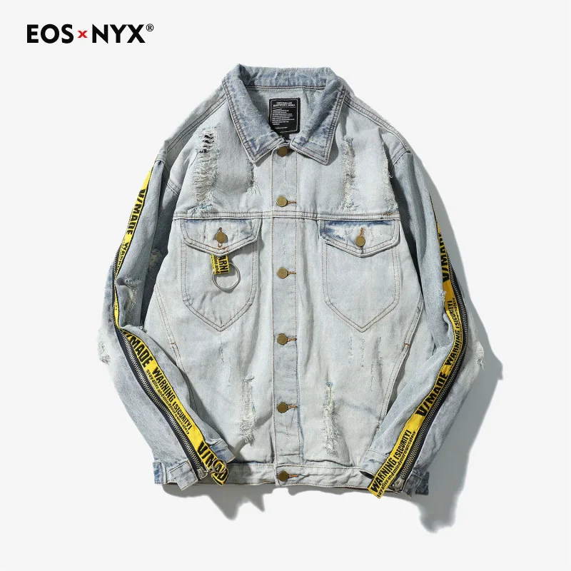 Eosnyx Kanye West Men's Hip Hop Patch Denim Jacket Rock Punk Jeans Jacket Summer Coat Jaqueta Masculina Chaqueta Hombre